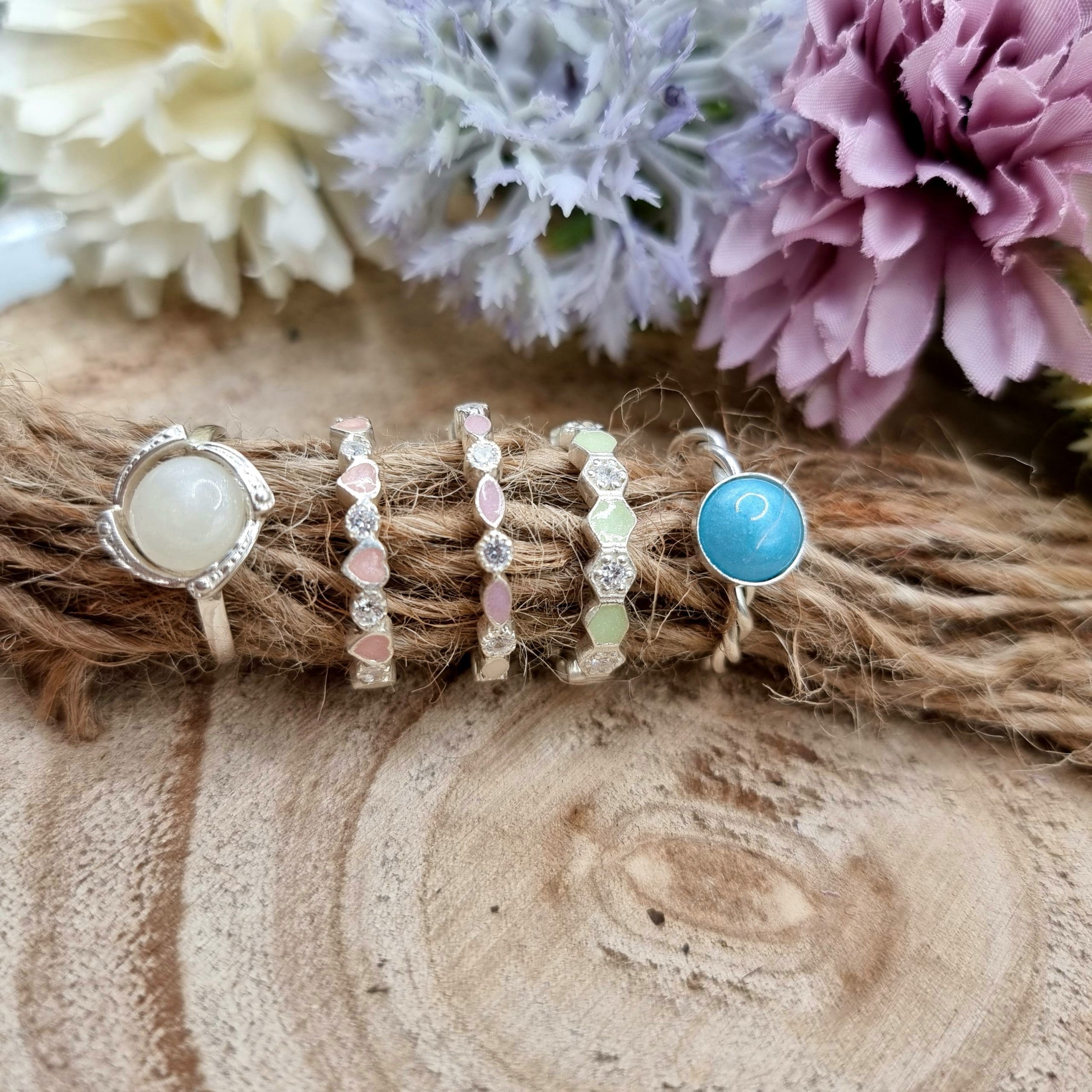 This stunning Princesa stacker style ring, is solid sterling silver and with the option of customisable cubic zirconia. This can be set with your choice of precious inclusion, Breastmilk, Ashes, umbilical cord. Choose between the different colours available, along with crushed opal. Various sizes available, for sizes not listed please contact me. Option for this setting in Gold and Rose Gold, please contact me for a custom quote. All items are made with love, care and compassion, inclusions are treated with utmost care.