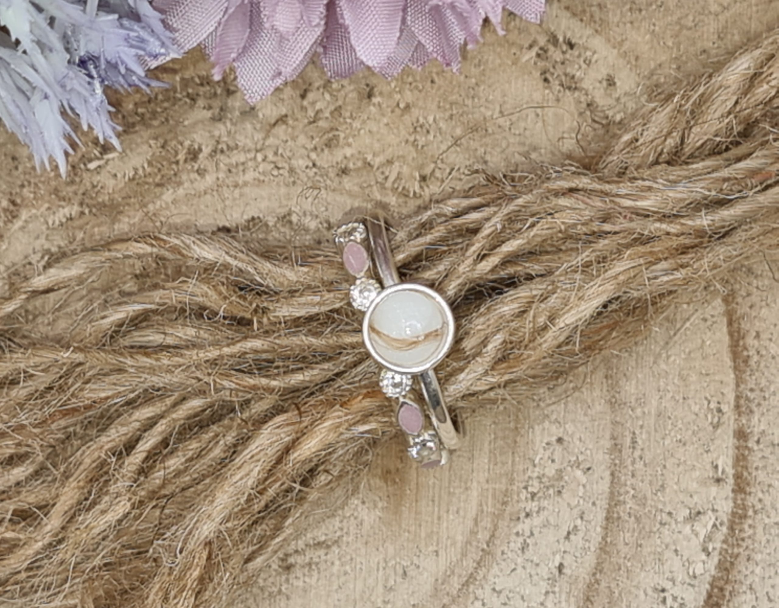 This gorgeous breastmilk ring is solid sterling silver. This can be set with your choice of precious inclusion.