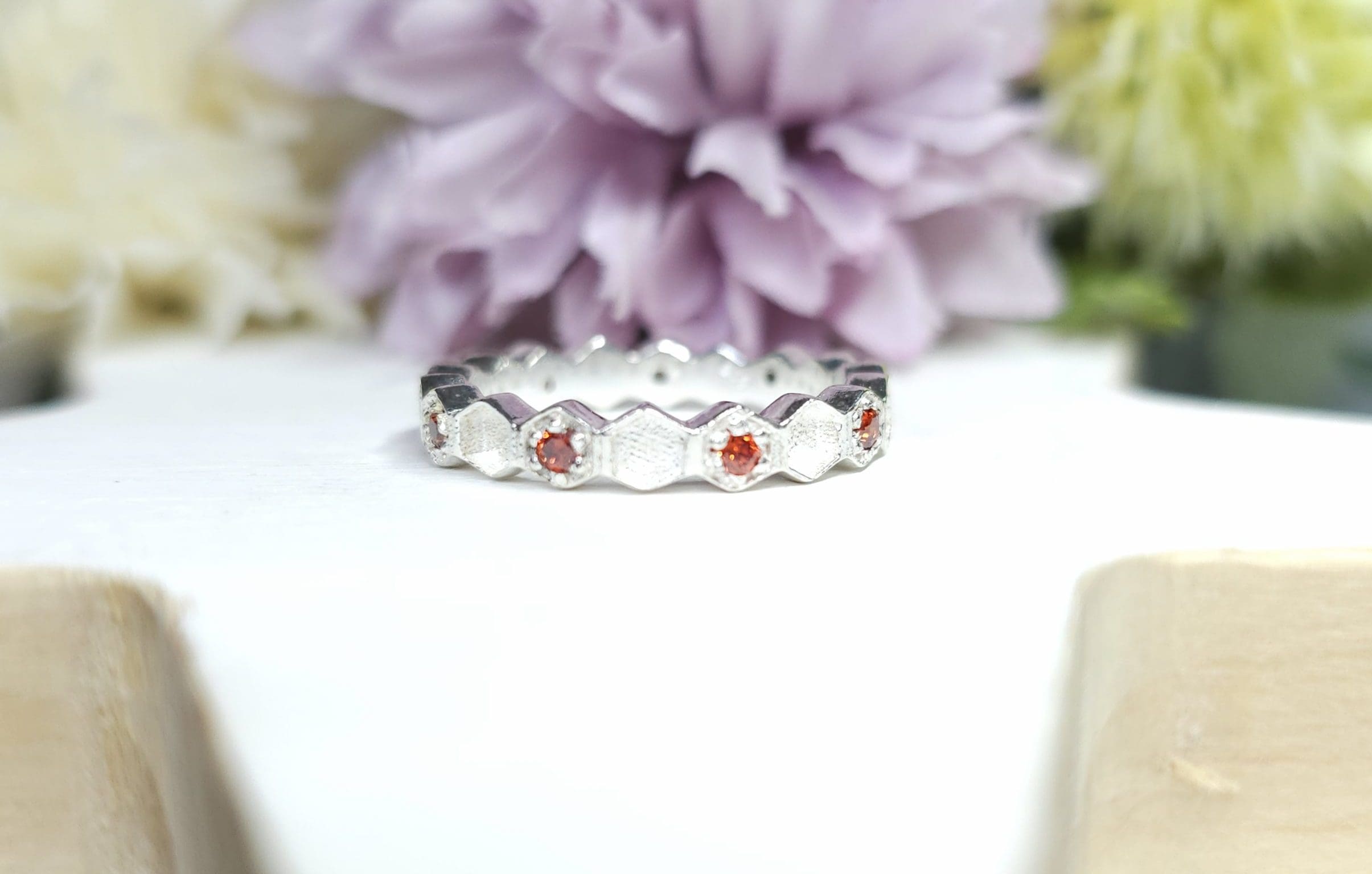 This stunning Hexagonum ring, is solid sterling silver. It makes for a beautiful breastmilk ring or memorial keepsake.
